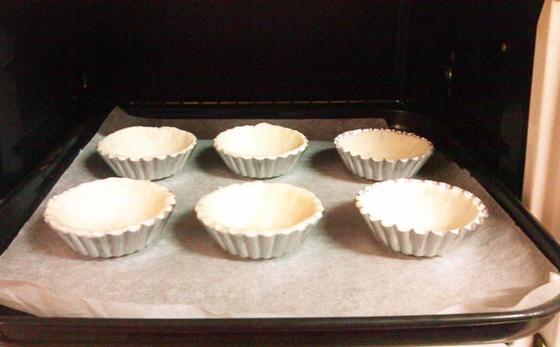 將酥皮放入模中壓實, 放入已經預熱至180度的焗爐